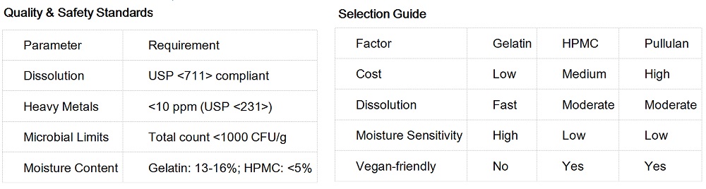 Available in gelatin (animal-derived) or vegetarian (HPMC, pullulan) options, these capsules meet diverse regulatory, cultural, and consumer preferences while ensuring stability, bioavailability, and patient compliance.